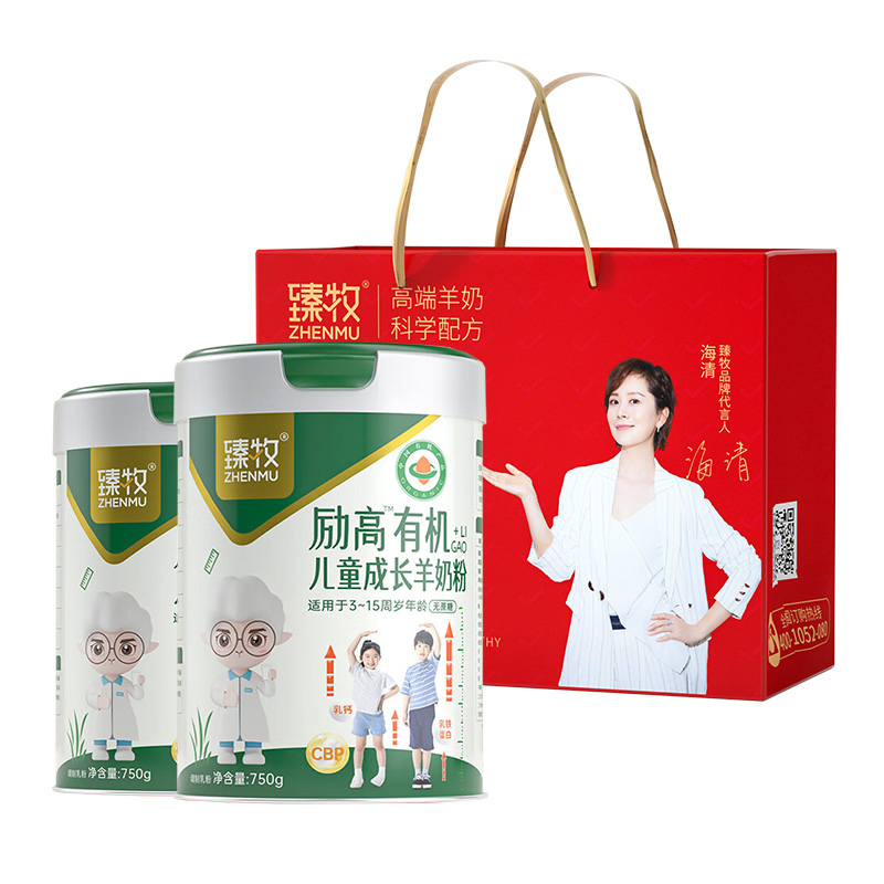 臻牧(zhenmu)无蔗糖励高有机儿童成长羊奶粉750g*2罐[礼袋装]